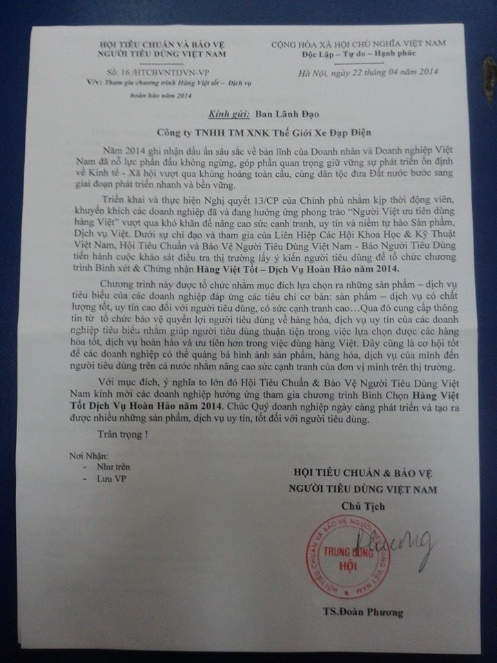 Cảm ơn Hiệp hội bảo vệ người tiêu dùng - Báo người tiêu dùng đã giúp đỡ Công ty chúng tôi xây dựng thương hiệu mạnh và uy tín.
