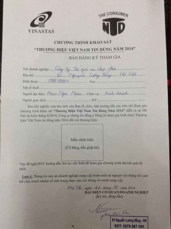 Đăng ký khảo sát chất lượng sản phẩm của hiệp hội bảo vệ người tiêu dùng.