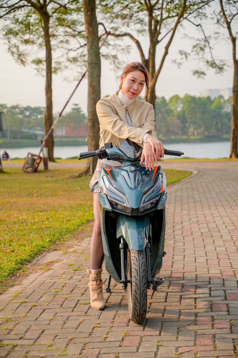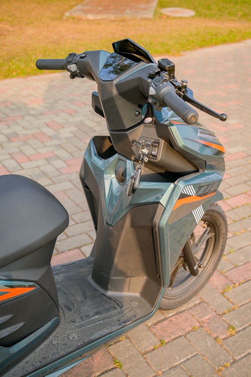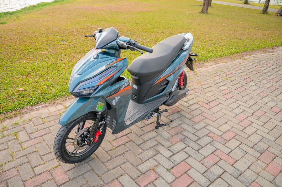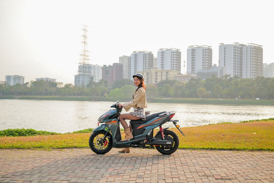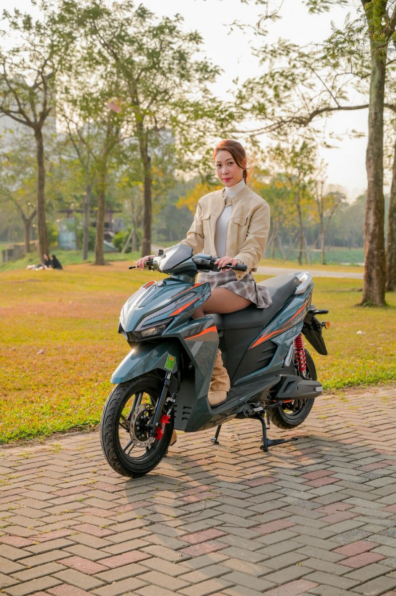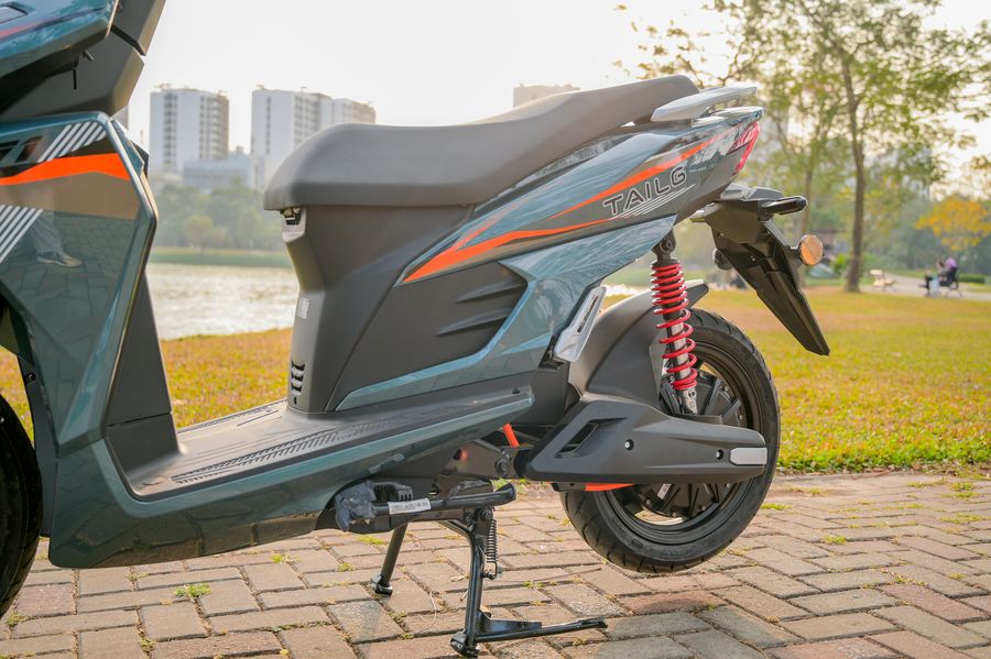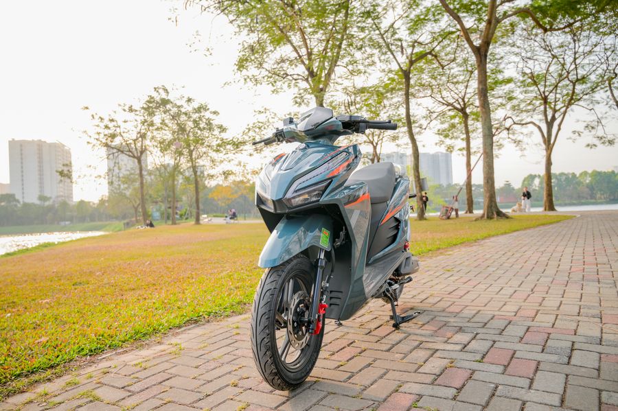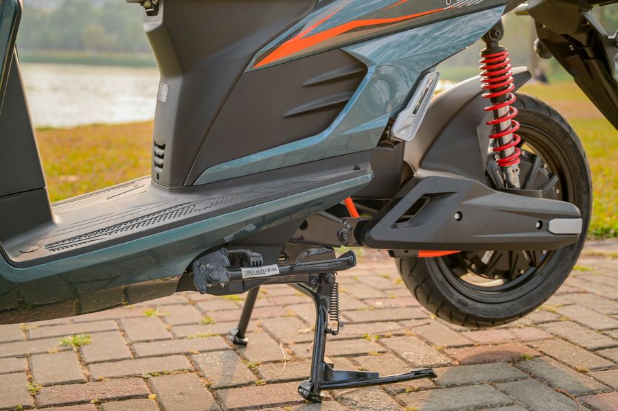 Trọng tâm xe được đặt thấp, kết hợp với bộ lốp không săm Kenda 14 inch bản lớn, giúp tổng thể trông đầm chắc và tạo cảm giác an tâm khi ngồi lên xe. Khi di chuyển trên đường, người lái dễ dàng cảm nhận được sự ổn định, nhất là khi vào cua hoặc chạy ở tốc độ cao hơn mức trung bình.